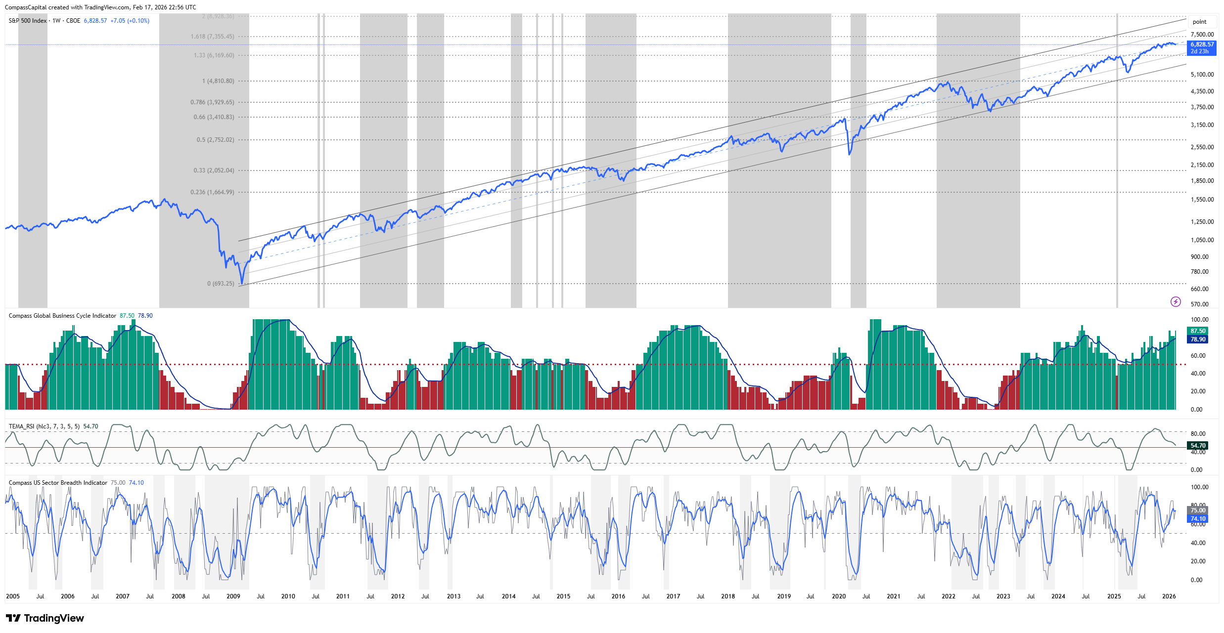 While the S&P500 is losing momentum, our global business cycle indicator has reacclerated and is providing a strongly supportive environment for equities.